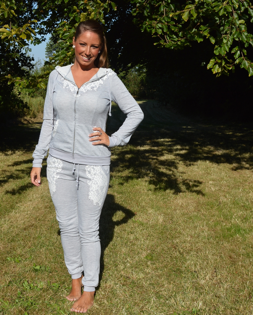 Blonde sæt - Cardigan og buks i grå med blonde og sten
