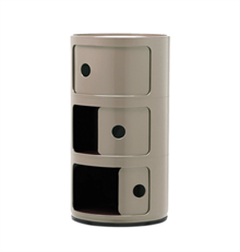 Kartell Componibili fås i 2 eller 3 rums modeller. Ønsker du at den skal være større så se nærmere på modulerne du selv kan bygge op lige præcis som du vil have det ved diameteren ø42 cm.